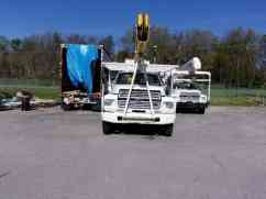 1989 Ford F700 CONVENTIONAL CAB, 7.0L V8. Bucket Truck with HI-RANGER Model: 5FA-48PBI 2 men bucket, 5 speed manual transmission with two speed rear-end. Truck drives great and all hydraulic system operate, A few of the cylinders have minor leakage issues, down riggers leak off if setting for several days, all glass is good, no major damage, minor rust and scratches, questions 5615962007