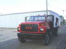 1991 GMC TOPKICK 16 FT. DUMPING FLATBED / HAS V-8 366 ENGINE / GAS / THROTTLE BODY INJECTION / 5 SPEED TRANS / AIR BRAKES / GOOD VIRGIN RUBBER / NEW PAINT