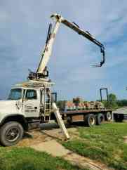 .Ford lts9000 with IMT 16042 drywall crane. Wireless control box with 2 batteries and onboard charger. Forks tilt 90 degrees up and rotate 360 degrees. Boom can reach 54"3 up and 42"0 out with a load of 3300#. With boom sucked all the way in load can be 5825#. 4 drive tires at 80%, 4 drive tires at 60%, and the tag axle tires are at 50%. Both steer tires are at about 70%. Cat 3306 turbo diesel with Eaton Fuller Roadranger 9 speed with deep reduction valve.