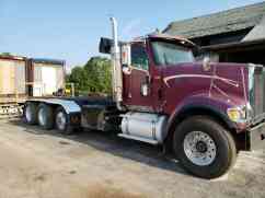 1999 International 9900 I tri axle roll off truck with 22 ft galbreath roll off body , pull tarp system , 20k front axle , 46k rears , 499,000 miles +/- , 13 speed transmission , great running cummins n-14 plus engine .