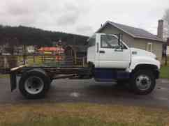 You are looking at a 2002 GMC Topkick C7H042 Diesel Cab & Chassis Truck. We purchased this from Hershey Candy Co. who used it as a delivery box truck since 2002 and removed the box and sold it to upgrade their fleet. It has always been fleet maintained. It has a Cat 3126 7.2L L6 turbo diesel engine with an Allison 6-speed automatic transmission. It runs and drives good with no mechanical problems we could find. It has dual-rear-wheels and the 22.5 tires are in good shape. The body is in good shape with average wear for the year, miles and use. The interior is clean and in good shape but does have some minor damages and staining to the dash trim (see pics). It has basic options with an AM/FM stereo and roll-up windows, but it does have A/C. The chassis is 11 1/2 ft long from the back of the cab to the end of the chassis. It would make a great box truck, dump truck, or almost anything else. If you"re looking for a good running, fleet owned, GMC diesel truck at a really great price, bid now, no reserve!