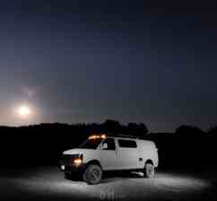 -104k miles / 6.0 gas, 4L80E, 14 bolt FF -5” Weldtec Designs lift, 33” Falkens, and 17x9 Black Rhino -Entire van is coated in grey Raptor Liner and is a breeze to keep clean. Just power wash and go. -full rack with floods and driving lights-touch screen in dash with Bluetooth and Rockford mids in the doors. -swivel seats, roof vent, rear mounted AC, and an RV window with screen. -interior is fully insulated to r13. Windshield to back doors, including all but the front doors -front end conversion to tinted composite headlights and grille-all of the windows are tinted. 20% on the front doors and 50 on the windshield -runs flawless but will need an AC compressor. AC does work.