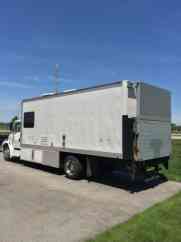 Search Terms: 1998 Freightliner FL-70 registered as a motor home. The truck could be used for various uses. The truck is in great shape and runs good. It is a 1998 Freightliner FL-70 Chassis with a CAT 3126 7.2L Diesel coupled with a 6-Speed Trans. The interior is clean and has a nice opening into the box for easy access. Inside the box is a nice table area that turns into a bed. It has a Refrigerator and Microwave installed as well. There"s a nice futon/sofa that fits in the space in front of the dinette, it folds down into a VERY comfortable mini-queen memory foam AND can easily be removed completely for even more hauling capability. The truck has 110 hookup which I usually used or just ran a small generator.(included!). The truck also has an air conditioner and heater. Although I have never had the need to use either I was told when we purchased it that it worked. The truck has an awesome liftgate that works fantastic. We have used it to put Harleys on it and lift them up and it will also lift my RZR. The box also has nice tie down points. We still use this truck daily and it works very well. It has a set of 245-75-22.5 Tires that are brand new. 2 45 gal fuel tanks. The truck is ready to use. The thing I can fault the truck for is the 2nd gear synchronizer needs replaced. 2nd gear works great but kicks out when shifting into third. The ratio of the trans is set up so I just skip 2nd and everything else is fine. We have even pulled our enclosed trailer and it pulls it great!