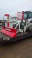 Performance Winch Skid with 30,000 lb. Warn winch. Comes complete and ready to work with hydraulic hoses/couplers, standard skid steer quick-tach plate, 300 feet of 5/8 IPS wire rope with self-locking swivel hook. This unit includes the optional anchor blade which greatly improves the anchor ability of the winch skid. As pictured, at blade level in soft turf, the blade has been proven to provide 38,000 pounds of resistance as verified with load cell reading of 12,800 pounds on one part of a three part line, but is capable of much more. The winch has a manual release and a roller tensioner. The winch is operated using the controls inside the skid steer safely behind the steel safety shield. This attachment is designed to be used on a medium to large tracked skid steer for optimum performance. The winch skid needs to be attached to the main lifting boom to protect the tilt cylinders and to provide a rigid winching platform. This can be done in several ways depending on your skid steer and preferences. Chains or synthetic rigging work well. The turnbuckles pictured are not included and would require anchor points to be permanently welded to the skid steer.